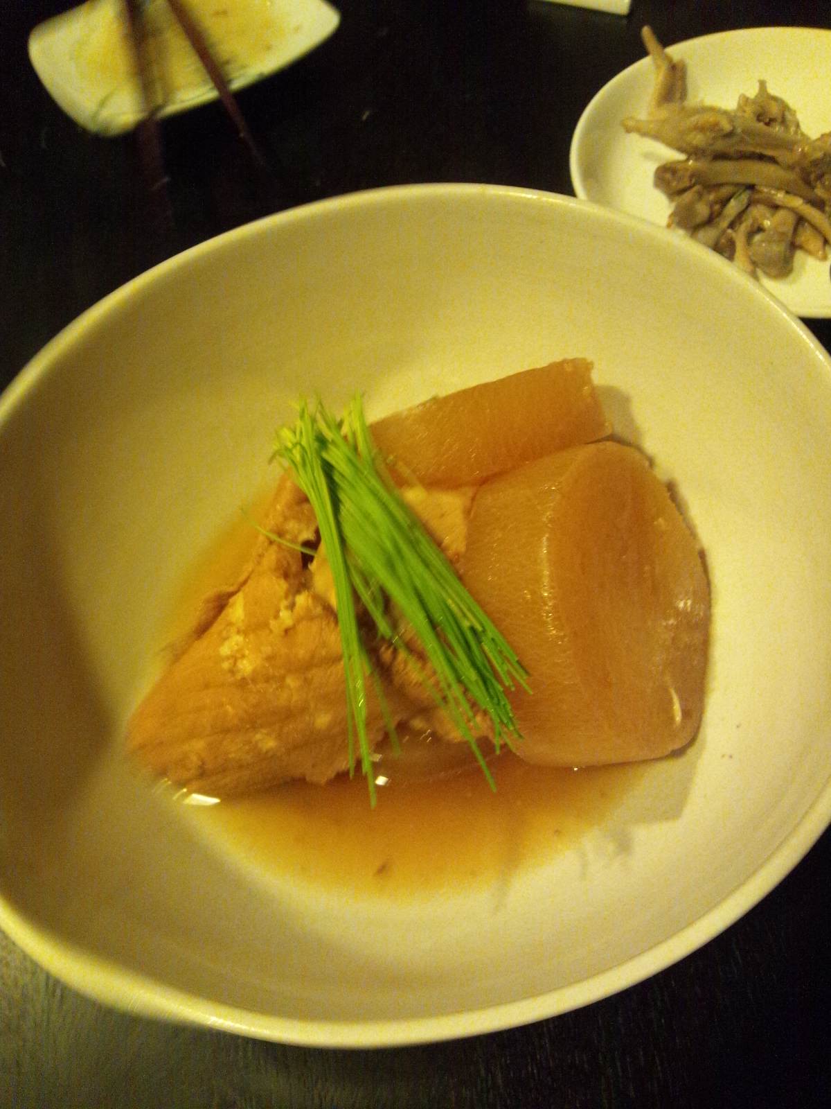 鶏手羽の酢煮込み、ぶり大根。鶏手羽のほうは小さい玉ねぎを丸ごと煮込んであるのがポイント。かわいくてちょっと豪華な感じがするのでよい。適当に作ったがなかなかうまくできたがしかしひとりで食べきれぬ。それが一人暮らしの悲しさ寂しさよ、しかしそれこそ気楽さよ。