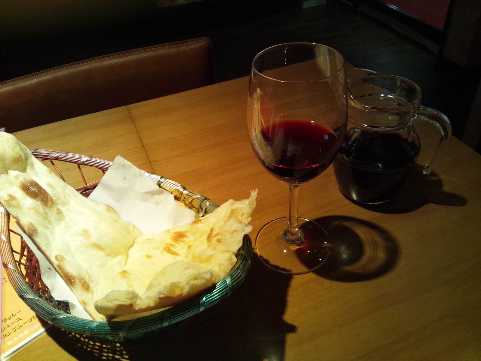 とりあえずこれは三件目のインド料理屋での、ナンと赤ワイン。
