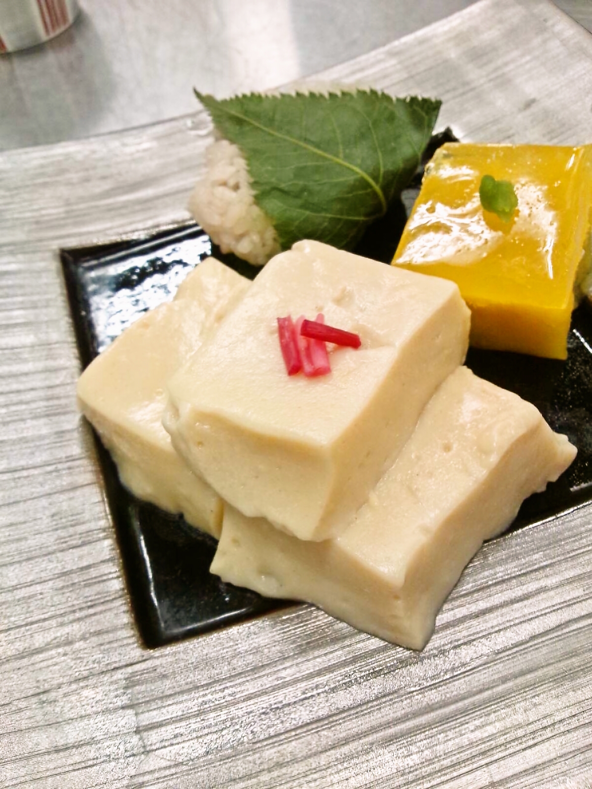 昨日の調理実習は甘味づくしでした。甘いものばっかりで、胸焼けがひどかった、というかほとんど吐きそうでした、が、寝たらなんとか治ったのでよかったです。それに今日は花の金曜日。ハナキンというやつです、って、今ふっと気づいたけど、ハナキンって、すっげえ猥褻な響きを感じてしまうんだけど、おれだけか? ハ、ハ、ハナ、キン……。 で、甘味を三種類。「きな粉ムース」「桜餅」「葛利休」を作ったのですが、今日は葛利休という料理レシピをご紹介します。