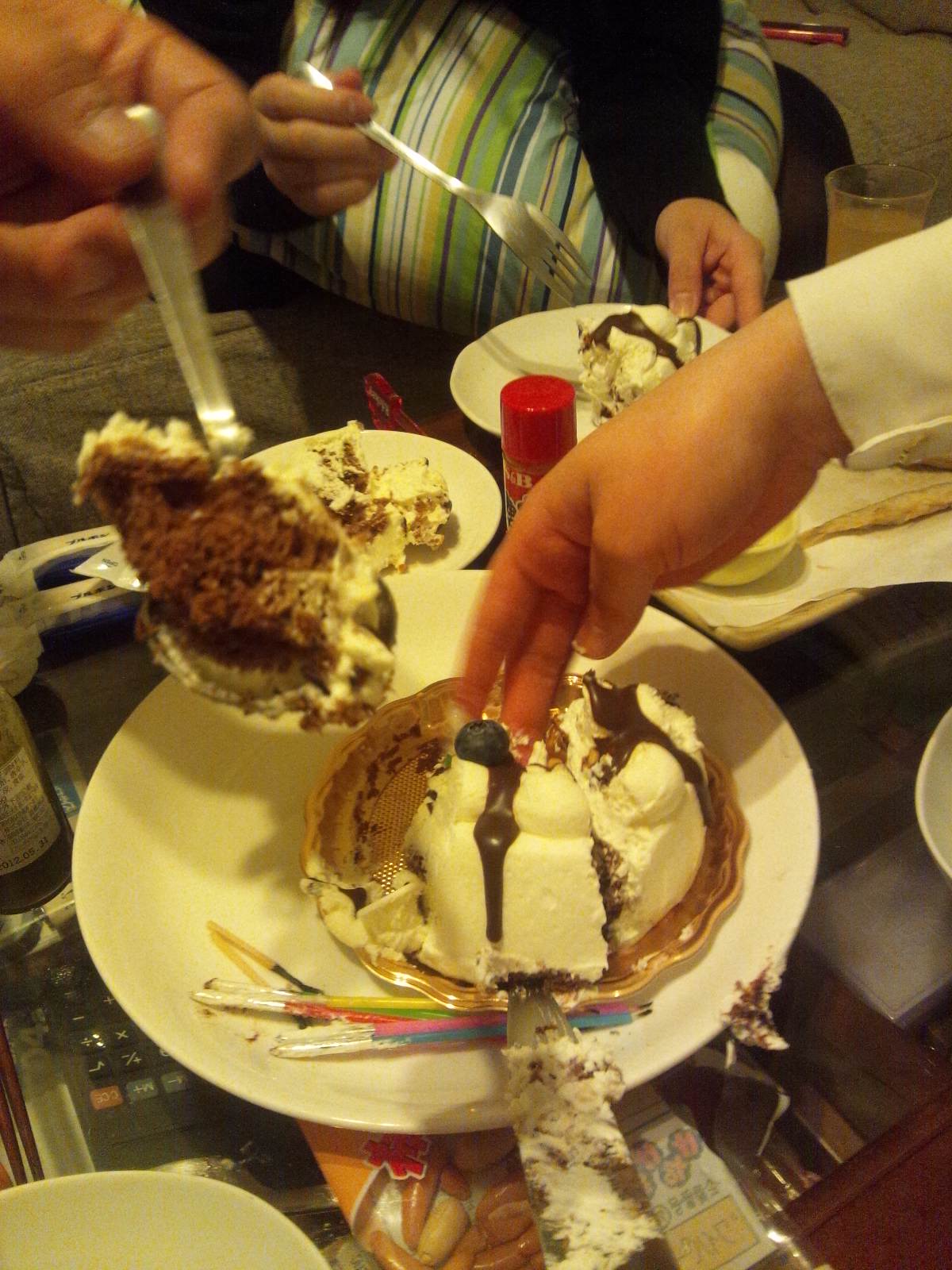 思えばあっという間にもう三月。学校に入ってからもう半年も経ったのか、と思う。それはともかく、先日の土曜日に飲み会をしたんですが、思いがけずケーキなんてものをいただきまして、それはそれはありがたいことです。というのが本日の画像。