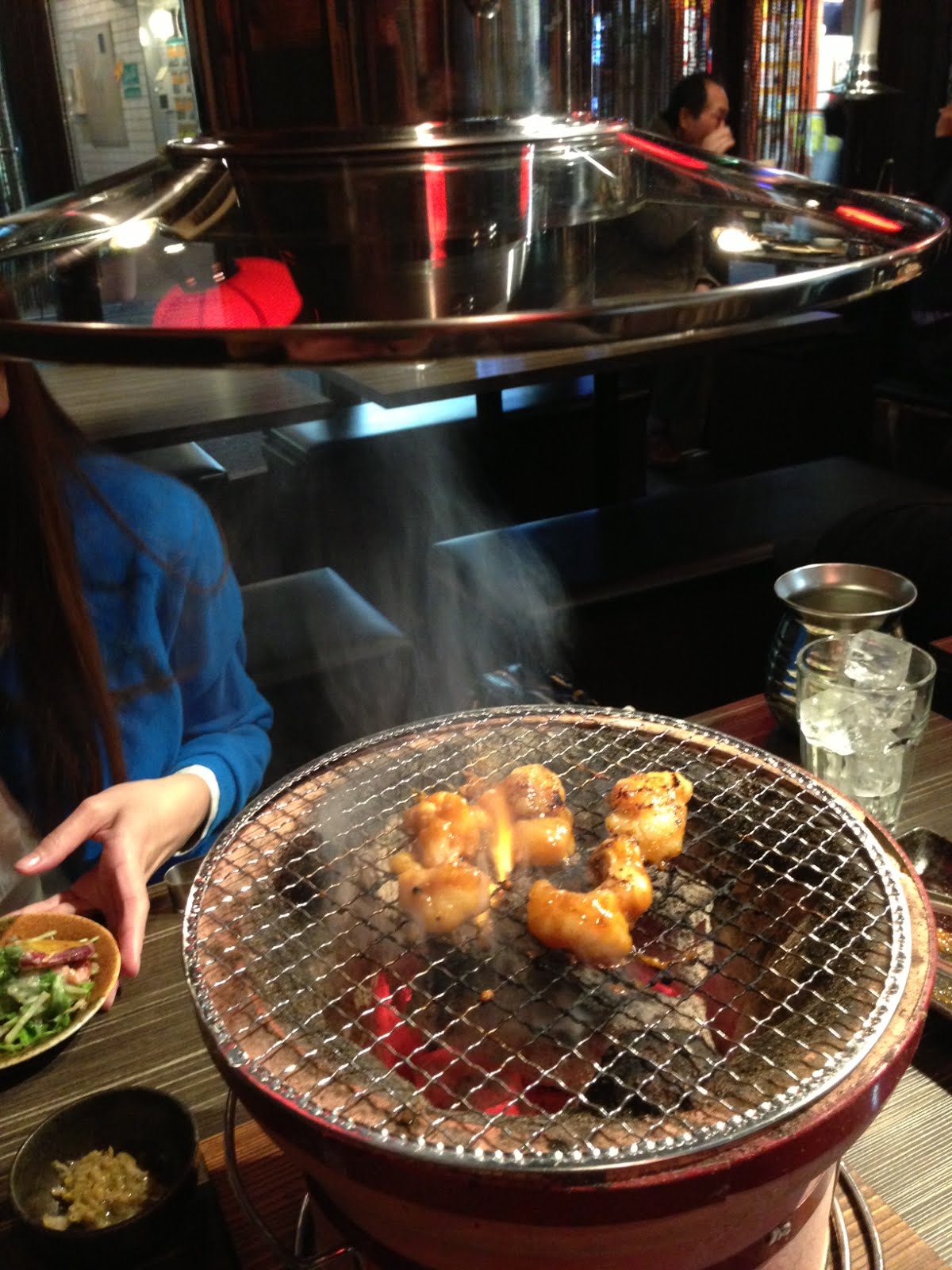 焼肉屋によく行くという人はもはや気にも留めないだろう、炭火焼きの上の直接的すぎるダクト。しかしぼくの焼肉屋経験値は今年で言うと3回かそこら、生まれてからの通算でも10回程度ではないかと思う。そういうわけで非常な違和感があるのである。