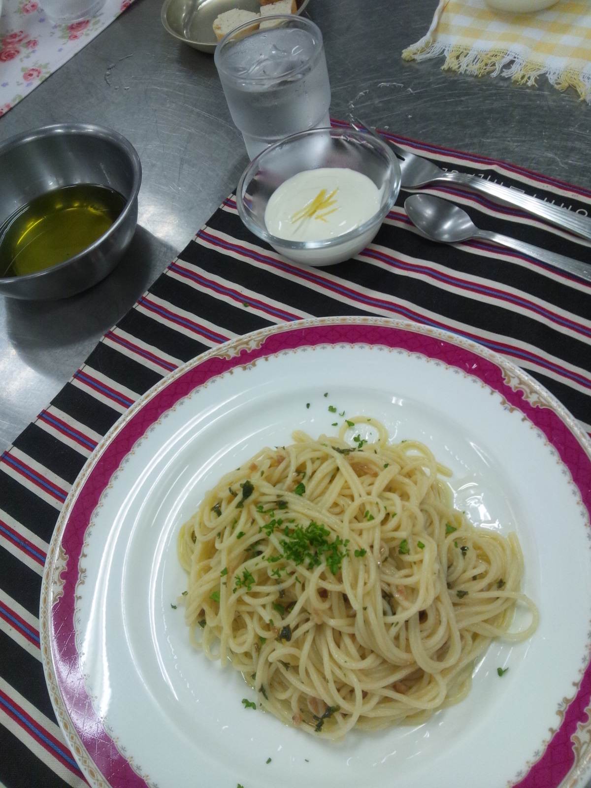 昨日は外部の先生がいらっしゃってペペロンチーノとパンナコッタのレシピを教えてくださった。
