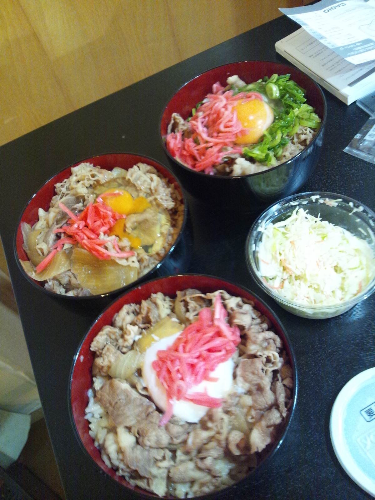 ちなみに撮影が成功して、作品になったときのタイトルは「LIFE feat 吉野家牛丼並盛×3+追っかけねぎ卵+卵+半熟卵+コールスロー」(しめて1,430円)という作品になる予定だったんですが、あえなく失敗。残念です。