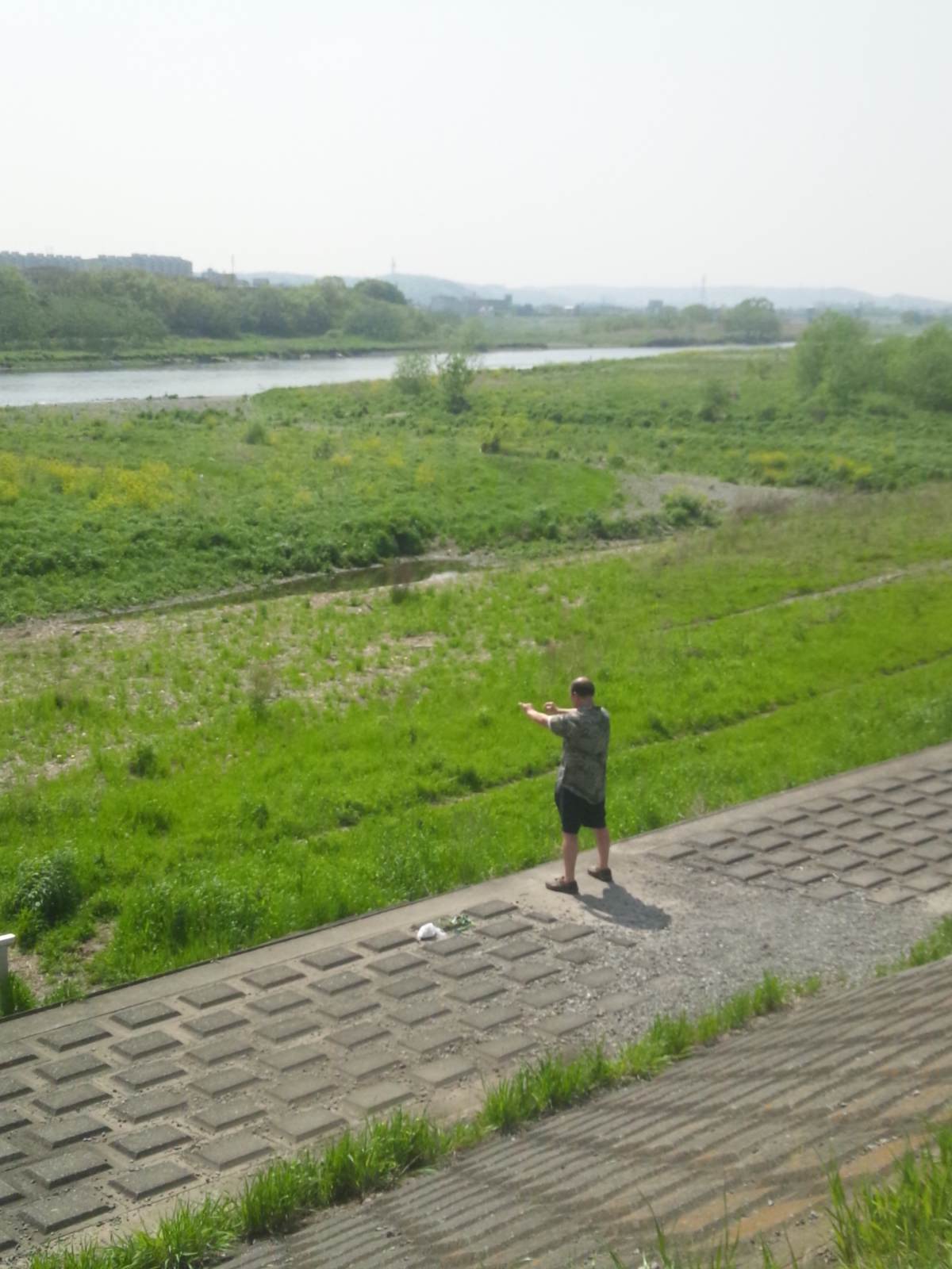 すると現れたのは、大いなる太陽神に、はたまた大地の神、たゆたう水の神に向かって礼拝をするかのような体操を繰り広げている禿頭(とくとう、であってたっけ?)の中年男性。三枚目の画像である。