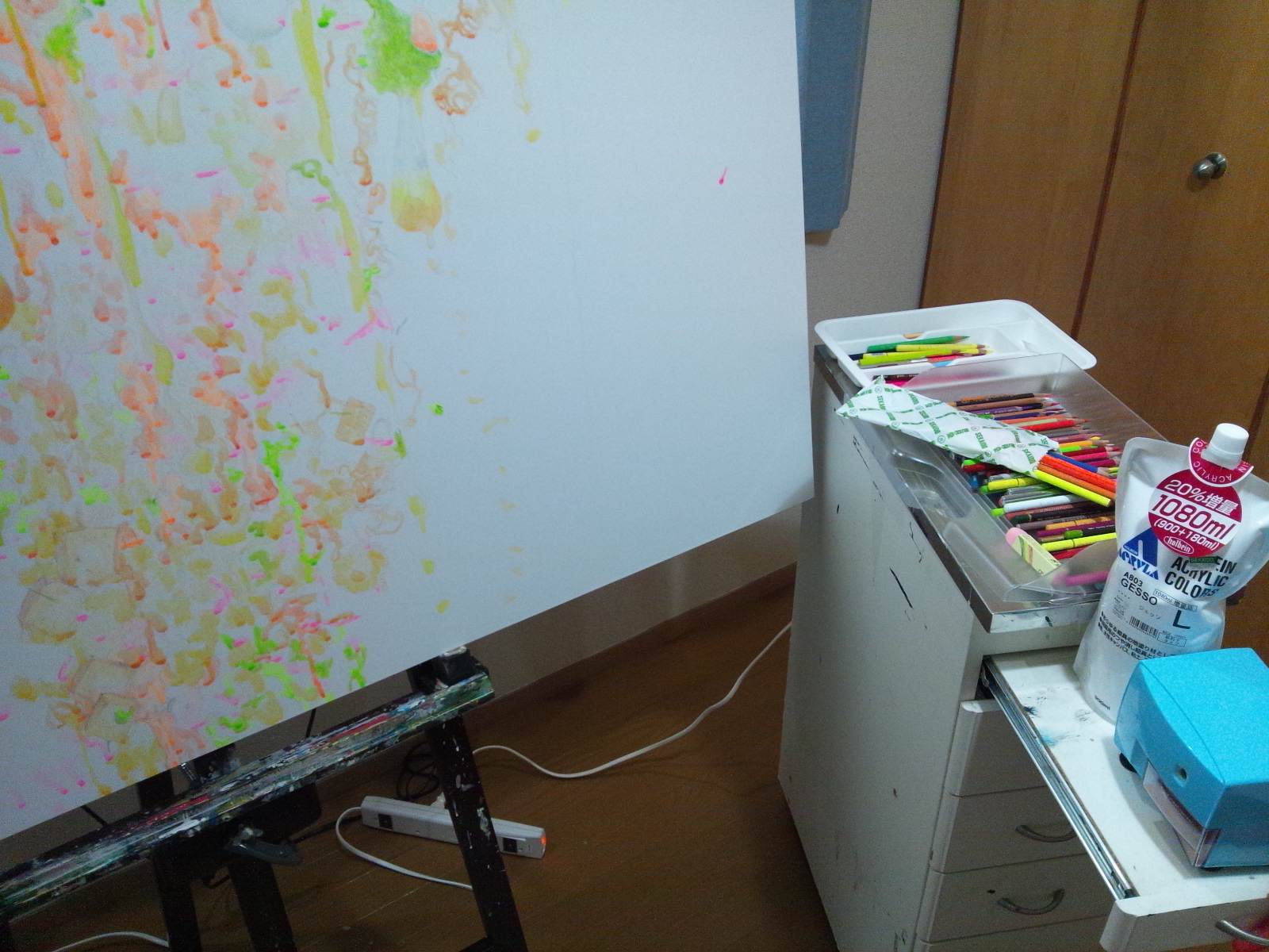 だって世界堂に行って色鉛筆とジェッソを買ってきた、から。それが本日の画像。なにがだってなのかって、往々にして寄り道をすると調子が狂ってしまうのだ。