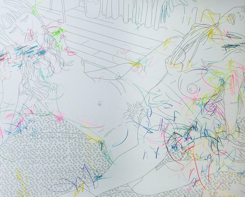 不自然のドローイング#132013年 木製パネルにケント紙、インクジェットプリント、オイルパステル 65.2x80.3cm